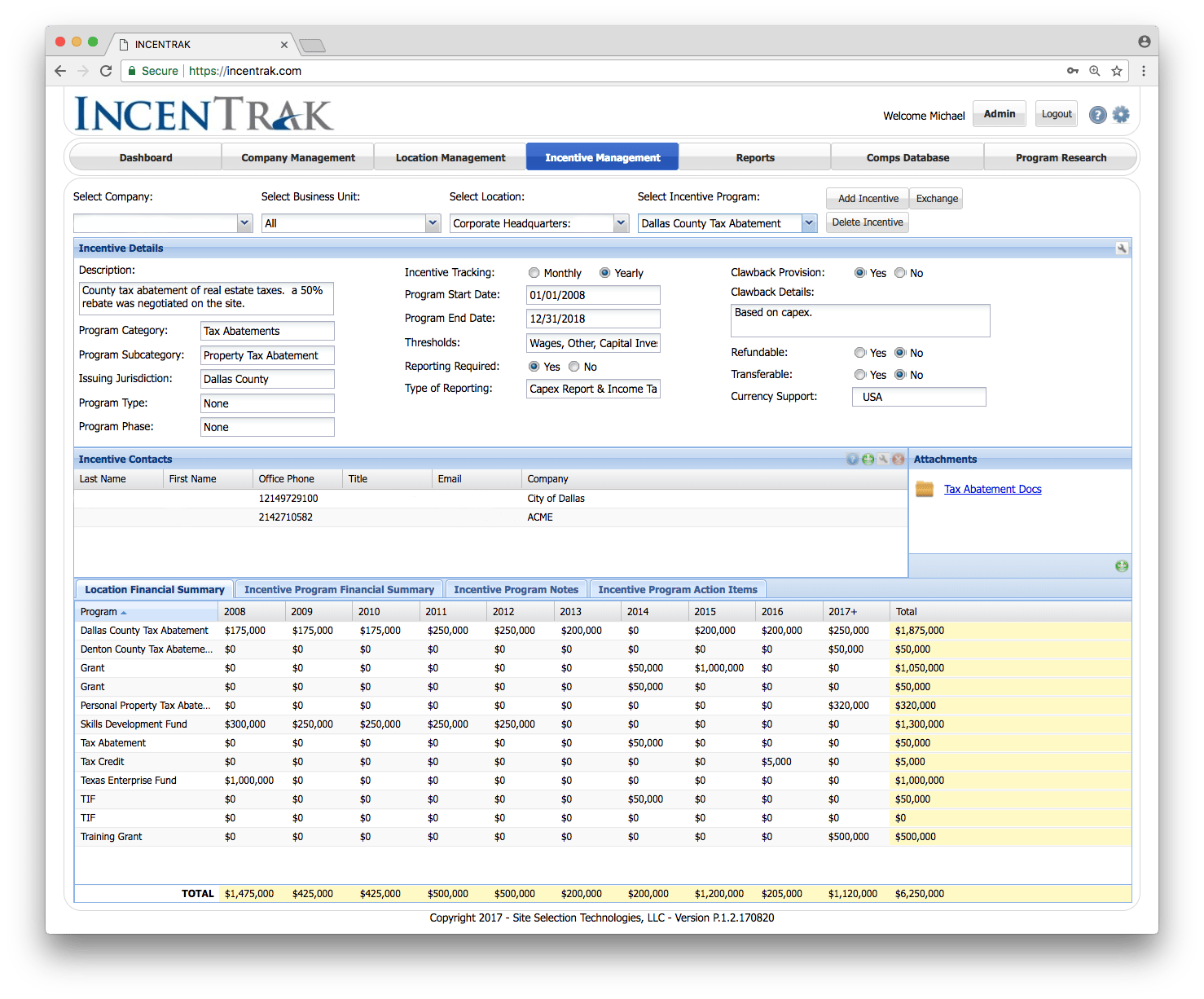 IncenTrak is a web-based software application that enables corporations and economic developers to manage economic incentives and monitor economic incentive conditions across the world.